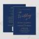 Orçamento Tudo em Um Convite Clássico de Casamento de Marinhos de Caligrafia Dourada com Detalhes de Trás.... Nosso barato único "All in One" de ouro no convite para casamento de marinho apresenta um roteiro elegante de caligrafia de ouro combinado com a tipografia serif para um simples convite clássico de casamento em um marinho chic. A parte de trás do convite contém todos os DETAILS que você normalmente veria em cartões separados no pacote de casamento, incluindo tempo e local de recepção, opções de alojamento, site de casamento, RSVP e informações de registro de presentes. Este convite de casamento ao estilo moderno foi concebido para ser elegante e consciente do orçamento... para não mencionar a poupança de tempo. Na parte de trás, há também um modelo de gráfico de código QR que você pode substituir por seu próprio código (ou excluir se você não planeja usar um). Todo texto de exemplo (além dos elementos gráficos) pode ser facilmente revisado com suas próprias informações sobre o modelo de personalização.