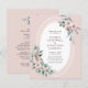 Rosas Florais Cor de Água do Boho Dusty Rosa e Eucalyptus Greenery Lace Oval Convite... Nosso convite de casamento floral "All in One", barato, contém rosas rosa poeirentas e verde eucalipto em um quadro oval branco, mostrando seu texto de convite personalizado. A parte de trás do convite contém todos os detalhes que você normalmente veria em cartas separadas dentro do pacote de casamento. O fundo em frente e atrás do convite é rosa-pinto romântico. Este convite de casamento moderno, à frente e ao fundo, foi concebido para ser elegante e consciente do orçamento... para não mencionar a poupança de tempo. Todo texto de exemplo pode ser facilmente revisado com suas próprias informações sobre o modelo de personalização.