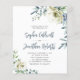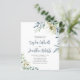 Orçamento Tudo em Um Detalhes sobre o Convite Floral de Casamento Eucalyptus Azul Eucalyptus... Nosso convite de casamento floral "frente e verso" do barato apresenta elegantes arranjos florais de aquarela e eucalipto em branco e tons de azul empoeirado bordando seu texto de convite. A parte de trás do convite contém todos os detalhes que você normalmente veria em cartas separadas dentro do pacote de casamento. Este convite de casamento moderno, à frente e ao fundo, foi concebido para ser elegante e consciente do orçamento... para não mencionar a poupança de tempo. No verso há também um gráfico de código QR que você pode facilmente substituir por seu próprio... apenas digitando o URL do seu site de casamento no modelo de personalização. Todo texto de exemplo pode ser facilmente revisado com suas próprias informações sobre o modelo de personalização.