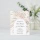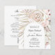 Orçamento Tudo em Um Boho Blush Rosa Rosa Rosa Seca Palma Folha Convite de Casamento... Nosso convite floral para o casamento floral "All in One", no barato, apresenta uma rosa rosa pincelada, no estilo boêmico, em um buquê de eucalipto e folhas de palma secas dispostas em volta de um quadro quente em forma de arco branco contendo seu texto de convite. A parte de trás do convite contém todos os detalhes que você normalmente veria em cartas separadas dentro do pacote de casamento. Este convite de casamento, no estilo moderno, foi concebido para ser elegante e consciente do orçamento... para não falar em poupar tempo. Na parte de trás, há também um modelo de gráfico de código QR que você pode substituir por seu próprio código (ou excluir se você não planeja usar um). Todo texto de exemplo pode ser facilmente revisado com suas próprias informações sobre o modelo de personalização.