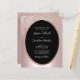 Orçamento Tudo em Um Convite para Casamento de Folhas de Lente Leve... Em um fundo de folha metálica cor-de-rosa esbranquiçada, nosso elegante orçamento de casamento "All in One" apresenta uma camada única de ombreiras brilhantes com o seu texto de convite em um quadro preto de oval com uma borda de película esbranquiçada. A parte traseira do cartão contém todos os detalhes que você normalmente veria em cartas separadas no pacote de casamento. Este convite de casamento ao estilo moderno foi concebido para ser elegante e consciente do orçamento... para não mencionar a poupança de tempo. Na parte de trás, há também um modelo de gráfico de código QR que você pode substituir por seu próprio código (ou excluir se você não planeja usar um). Todo texto de exemplo pode ser facilmente revisado com suas próprias informações sobre o modelo de personalização. NOTA: o papel de cartão "Orçamento" não é o mesmo que os convites de cartão simples tradicionais. Nossos cartões de orçamento são de 4,5 x 5,6 polegadas feitos de papel semirbrilhante de 110 lb comparado com os tradicionais cartões planos de convite de casamento de 5 x 7 polegadas em papel mate de 120 lb. Além disso, os cartões de orçamento não vêm automaticamente com envelopes, assim como os cartões de convite tradicionais, mas você pode comprá-los na mesma página na saída, se desejar. Tudo isso em um design também está disponível em um tradicional cartão de convite de casamento 5x7.