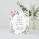Orçamento tudo em um Boho Dusty Pink Floral Rosas e Eucalyptus Watercolor Greenery Invitation... Nosso convite de casamento "Tudo em Um" para barato contém rosas rosa poeirentas e arranjos verdes eucaliptos em uma estrutura geométrica de folha metálica dourada que faz fronteira com seu texto de convite personalizado. A parte de trás do convite contém todos os detalhes que você normalmente veria em cartas separadas dentro do pacote de casamento. Este convite de casamento, no estilo moderno, foi concebido para ser elegante e consciente do orçamento... para não falar em poupar tempo. Todo texto de exemplo pode ser facilmente revisado com suas próprias informações sobre o modelo de personalização.