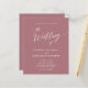 Orçamento tudo em um convite para casamentos de Rosa com Tendy Dusty com Caligrafia Elegante... Nosso convite de casamento para a tipografia "All in One", barato único, apresenta um roteiro de caligrafia branca combinado com texto de serifa em um fundo de rosa poeirento de tendências. A parte de trás do convite contém todos os DETAILS que você normalmente veria em cartões separados no pacote de casamento, incluindo tempo e local de recepção, opções de alojamento, site de casamento, RSVP e informações de registro de presentes. Este convite de casamento ao estilo moderno foi concebido para ser elegante e consciente do orçamento... para não mencionar a poupança de tempo. Na parte de trás, há também um modelo de gráfico de código QR que você pode substituir por seu próprio código (ou excluir se você não planeja usar um). Todo texto de exemplo (além dos elementos gráficos) pode ser facilmente revisado com suas próprias informações sobre o modelo de personalização.