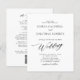 Convite de Casamento Preto e Branco com Caligrafia Elegante Tudo em Um... Nosso convite de casamento preto e branco "Tudo em Um" acessível apresenta caligrafia preta combinada com texto serifa e sem serifa para um convite de casamento simples, clássico e elegante. O verso do convite contém todos os detalhes que você normalmente veria em cartões separados no pacote de casamento. Este convite de casamento de estilo moderno foi projetado para ser elegante e consciente do orçamento... sem mencionar que economiza tempo para noivas ocupadas. No verso, há também um modelo de gráfico de código QR que você pode substituir pelo seu próprio código no modelo de personalização simplesmente digitando o URL do seu site de casamento. Todo o texto de exemplo (além dos elementos gráficos de caligrafia) pode ser facilmente revisado com suas próprias informações no mesmo modelo de personalização.