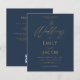 Apresentação do nosso convite à apresentação de tipografia moderna de casamento Dourado azul: faça uma declaração com os nossos elegantes convites de casamento que incluem tipografia moderna e sotaques azuis e dourados de Marinho luxuoso. Criados com muita atenção aos detalhes, esses convites exudem sofisticação e estilo, definindo o tom para seu dia especial. O fundo preto elegante é enfeitado com uma espantosa escrita dourada, criando um contraste impressionante que cativa o olho. Personalize os detalhes do seu casamento, desde a data e local até os nomes da noiva e do noivo, para criar um convite personalizado que reflita a sua história de amor única. Quer você esteja planejando um caso urbano chic ou uma família glamourosa, nosso Marinho Blue Dourado Invitation Modern Typografia Script certamente impressiona seus convidados e deixa uma impressão duradoura. Elevem a sua papelaria de casamento com este belo pacote de convite que combina design moderno com elegância eterno.