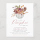 Personalize este design de chá de fraldas com tema de outono com seus detalhes de evento para fazer seus próprios convites exclusivos! Este cartão inclui um arranjo de aquarelas pintadas manualmente das folhas do outono, flores do crisântemo, grama-pampas e verde no topo de uma abóbora. "Uma pequena abóbora está a caminho!" está escrita abaixo com "Pumpkin" em bonito letra de escrita. Os nomes dos casais e as informações de festas estão no fundo na tipografia serif clássica. Este modelo apresenta dois nomes para um chá de fraldas, mas pode ser facilmente alterado para mostrar apenas um. Estas cartas se revertem para uma cor burguesa rica com um padrão de folhas brancas sobre o topo. Clique em "Personalizar este modelo" para editar os nomes e detalhes. Para personalização mais avançada, vá até "clique para personalizar mais" para acessar a ferramenta design onde você pode editar fontes, cores, posicionamento e muito mais! Como parte da seleção orçamentária no Zazzle, esta folha não é um tamanho de convite padrão ou qualidade de papel. Se quiser que este design num cartão de convite o encontre na nossa loja ou utilize o Zazzle Make Machine para o transferir para o produto da sua escolha. Sinta-se à vontade para me mandar qualquer pergunta e terei todo o prazer em ajudar! Procure na minha loja mais convites para o chá de bebê de bebê.
