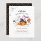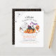 Cartões de modelo de convite para chás de fraldas do Dia das Bruxas. A frente deste orçamento e um design exclusivo apresenta uma teia de aranha no canto superior esquerdo. O texto diz "um pouco de bu está quase vencido!" com uma ilustração de amigos loucos pintados à mão. Um adorável gato preto está se debruçando sobre uma abóbora com um chapéu roxo e varinha mágica, há dois fantasmas, um chapéu feiticeiro, um morcego roxo, um balão laranja, e doces! Abaixo, seu nome e detalhes do evento de chá de fraldas aparecem na tipografia moderna com o nome da futura mãe em laranja, e a data de chá em roxo. Estas cartas invertem para um padrão colorido de confete branco e laranja contra um fundo preto. Uma design neutra em termos de gênero, perfeita para qualquer rapaz ou rapariga que se esperava no outono ou no início do inverno. Clique em "Personalizar" para alterar o texto. Como parte da seleção orçamentária no Zazzle, esta folha não é um tamanho de convite padrão ou qualidade de papel. Se quiser que este design num cartão de convite o encontre na nossa loja ou utilize o Zazzle Make Machine para o transferir para o produto da sua escolha. Sinta-se à vontade para me contactar com quaisquer perguntas relacionadas a design!