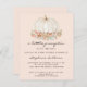 Um pouco de abóbora está a caminho! Este convite de queda fofo apresenta uma abóbora e folhagem aquosa em um fundo bege mole. Facilmente personalizável. Porque nós criamos a nossa trabalho de arte, você não encontrará esta imagem exata de outros designers. Original Watercolor © Michele Davies.