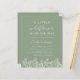 Celebrar a chegada de um novo pacote de alegria com um belo pequeno flor silvestre no caminho do chá de fraldas temido. Junte-se a nós por uma tarde cheia de amor e felicidade enquanto honramos os futuros pais. O convite apresenta uma azeitona espantosa ou um fundo verde sábio, acentuado por uma série de flores silvestres vibrantes.