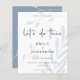 Um valor para o alternativo do ORÇAMENTO em tamanho menor de 4,5 x 5,6" de semirbrilho de 110 lbs, que é de espessura semelhante a um cartão postal (no entanto, não é adequado para uso como cartão postal). POR FAVOR, OBSERVE QUE HÁ UM convite por folha. Vamos Fazer Esta Folha Azul Derramado Salvar A Data. Um fundo de folhagem azul empoeirada está em cada lado e o conjunto informal de Vamos de roteiro azul escuro Faça Isto para convidar seus convidados a salvar a data de seu casamento. O resto do texto que você pode personalizar facilmente com seus detalhes. Um plano de fundo azul empoeirado está no verso.Você também pode mudar as cores da fonte e da folha, assim como as cores de fundo na frente e no verso, se quiser se adequar melhor ao tema da cor do casamento, através da opção personalizar mais. Se precisar de ajuda, por favor, não hesite em me mandar uma mensagem.