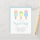 Nada melhor para as festas de aniversário de verão das crianças do que picolés. Esses convites contêm três picolés, o primeiro com um pouco picado, o segundo derretido e o terceiro intocado, tudo em cores pastéis. Com uma fonte divertida de script, "Partido picolé" é exibido em uma cor azul-lacrimogênea. Uma tipografia sans-serif de tendência exibe os detalhes da festa e o nome. Inverter para fundo pastel com bolinhas. Como parte da seleção do orçamento aqui no Zazzle, esses convites vêm em tamanhos limitados e estoques de papel. Se você precisar de um tamanho ou estoque de papel diferente, esse design pode ser transferido para um formato padrão 5x7 usando a ferramenta de transferência design para obter mais opções.
