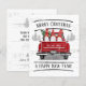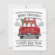 Este cartão de férias rústico personalizado apresenta um caminhão vermelho vintage com uma árvore de Natal e três gnomos vestidos de justiça vermelha e branca no fundo. Diz "Feliz Natal e Feliz ano novo!" Personalize com seu nome de família e ano na parte de trás do caminhão. A parte traseira do cartão tem uma saudação que você pode deixar como está ou personalizar juntamente com sua assinatura. Feliz Férias!