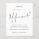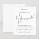 Um valor para o alternativo do ORÇAMENTO em tamanho menor de 4,5 x 5,6" de semirbrilho de 110 lbs, que é de espessura semelhante a um cartão postal (no entanto, não é adequado para uso como cartão postal). POR FAVOR, OBSERVE QUE EXISTE UM convite por orçamento de folha Será que você será o nosso cartão de proposta oficial. Um simples, mas elegante design preto e branco. Escrito de na moda. Oficiente é o palco central. O resto do texto que você pode personalizar facilmente. As cores de texto e de fundo podem ser alteradas se você quiser se adequar melhor ao seu tema de casamento através da opção personalizar mais.