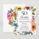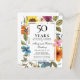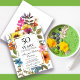 Um quadro branco simples e moderno permite que as flores silvestres espiem para lhe dar uma elegância casual. Um girassol amarelo é junto com flores púrpuras, laranja e azuis. As costas são tão bonito como a frente com uma grande buquê de coordenar flores silvestres do verão. Este convite para o casamento faz parte da coleção Summer Wildflower.