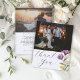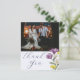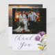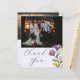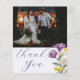 Cartões de agradecimentos minimalista moderno. Apresentando uma caligrafia elegante e flores silvestres caprichosas em branco roxo e amarelo. Este modelo é para 2 fotos da paisagem. Fácil e divertido de personalizar para criar suas próprias placas "Obrigado" exclusivas.