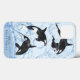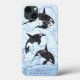 Incrível cor d'água orcas arte de nadar e saltar orcas e uma orca bebê com água e ondas.