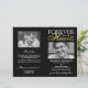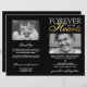 Programa de funeral minimalista com um fundo preto que pode ser alterado para qualquer cor, uma foto de seu ente querido perdido, o texto "para sempre em nossos corações", os detalhes do funeral, um obituário, ordem de serviço, os detalhes do velório, outra foto na página de trás e uma nota de agradecimento personalizada. POR FAVOR, NOTE: Estes vêm como uma folha plana de papel de qualidade, você precisará dobrá-los você mesmo.