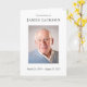 Um programa de funeral de fotos simples, limpo e minimalista que é agradável aos olhos. O design apresenta uma grande foto na parte frontal, destacada com uma borda de abertura branca para adicionar um toque extra na elegância.