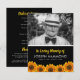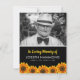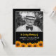 Ordem funerária de serviço/obrigado nota apresentando um fundo na moda preto, girassóis amarelos brilhantes, uma foto do seu amado perdido, ordem memorial de serviço, e um obrigado que você modelo é fácil de personalizar.