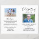 Programa memorial funerário com uma fotografia do seu ente querido, seu nome, datas, local do memorial e data do evento. Na dentro está um obituário, e a ordem de serviço; e atrás de outra foto, uma nota de agradecimento e o segundo lugar para depois do funeral. POR FAVOR, NOTE: Estes vêm como um pedaço de papel de qualidade, você mesmo terá que dobrá-los.