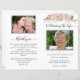 Programa de memórias fúnebres do funeral apresentando a foto do seu falecido amor, mostrada por belos detalhes florais cor-de-água, cor-de-rosa-pincel e creme. Na frente abaixo da foto falecida você pode adicionar o nome, o nascimento e a data da morte, o endereço e a data do local do memorial. Dentro à esquerda, há uma área para o obituário e à direita uma área para a ordem de serviço. No verso há a oportunidade de adicionar uma segunda fotografia, uma obrigado que você envia e as direções para depois das instruções do funeral. NOTA: o programa vem em uma folha de papel de qualidade plana que precisará ser dobrada assim que você as receber. Coordenando a Celebração do Cartão de Convite à Vida, guia, Assinatura de Foto de Boas-vindas e notas de agradecimento também disponíveis. Parte do nosso "Delicate Funeral, Memorial Collection".