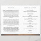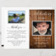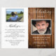 Um programa de memórias fúnebres do funeral com a foto do seu amor falecido, mostrada por um belo fundo de madeira rústica. Na frente abaixo da foto falecida você pode adicionar o nome, o nascimento e a data da morte, o endereço e a data do local do memorial. Dentro à esquerda, há uma área para o obituário e à direita uma área para a ordem de serviço. No verso há a oportunidade de adicionar uma segunda fotografia, uma obrigado que você envia e as direções para depois das instruções do funeral. NOTA: o programa vem em uma folha de papel de qualidade plana que precisará ser dobrada assim que você as receber. Coordenando a Celebração do Cartão de Convite à Vida, guia, Assinatura de Foto de Boas-vindas e notas de agradecimento também disponíveis. Parte do nosso "Delicate Funeral, Memorial Collection".