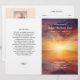 A bela modelo do programa funerário por pôr do sol mostra uma magnífica foto do pôr do sol na frente e uma foto obituária no dentro, junto com a ordem de serviço, e uma escritura no verso. Programas impressão frente e verso em papel de tamanho carta que você precisará dobrar ao meio.