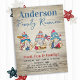 Celebre sua família em estilo com nossos convites de festas patrióticos de reagrupamento familiar! Nossos gnomos brancos adicionam um toque de charme às suas festividades, com detalhes desenhados à mão e sotaques de aquarela. Com uma fazenda, condado, tema rústico, o esquema clássico de cor vermelha, branca e azul define o tom para uma festa de verão cheia de comida, diversão e fogos de artifício. Não perca esta oportunidade de se reunir com entes queridos e honrar a história da nossa nação! COPYRIGHT © 2023 Judy Burrows, Black Dog Art - Todos Os Direitos Reservados. Convite de festas de Sindicato da Família Farmhouse de Gnomos CHURRASCOS