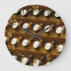 uma foto de órgão pára, com números em ouro na fonte Curlz, ao redor do relógio.