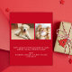 Saudações de três fotos de Natal amigáveis com "Peace & Joy" em um roteiro elegante sobre sua foto na frente. No verso, adicione mais duas fotos e uma saudação personalizada.