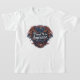 Uma camiseta patriótica e ousada com a frase "Orgulho de ser Americano" em uma fonte vermelha, branca e azul, cercada por estrelas e listras.