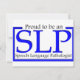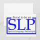 "Orgulhoso de ser um SLP, Patologista de Língua Falada". Este design pode ser encontrado em t-shirts, chapéus, canecas, ímanes e muito mais!