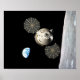Nasa renderização do VCE de Órion da constelação colocada em uma fotografia original da Terra e da Lua da Apolo 8