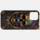 Ornamentado de crânio gótico iPhone 13 Pro Máx. © Desejos do Coração Escuro. Esta capa de telefone tem um design de crânio gótico ornamentado roxo e azul.