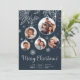 Cartões com fotos festivos e de feriados únicos apresentam cinco fotos que aparecem como ornamentos em um esboço branco ilustrando a árvore de Natal enfeitiçada com flocos de neve e snowflakes. "Feliz Natal" aparece por baixo em letras brancas de escrita de caligrafia. Personalize com seu nome de família, o ano e os nomes individuais na parte inferior.