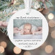 Celebre as alegrias simples do seu mais novo membro da família com um ornamento acrílico fotoredondo de na moda 2. A design neutra em termos de gênero é adequada para um novo menino ou menina. Palavras e imagens neste modelo são simples de personalizar. A citação de "Meu Primeiro Natal" é fácil de mudar caso seja necessária para outra ocasião. Design apresenta duas imagens de sua escolha, uma moderna borda negra e branca minimalista e uma simples tipografia de estilo de máquina de escrever. Esta familia única adiciona um toque elegante às decorações das casas de Natal.