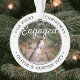 Celebre o feliz feriado de 1rua do seu noivado com uma foto personalizada de 2 "Our First Christmas Engaged" em ornamento acrílico redondo. Todo texto e imagens neste modelo são simples de personalizar e podem ser diferentes ou iguais em frente e atrás. (DICAS DE IMAGEM e DESIGN DE TEXTO: 1) Para ajustar a posição do texto, adicione espaços no início ou no fim. 2) Para centralizar a foto exatamente como quiser, recorte-a em forma quadrada antes de carregá-la no site do Zazzle.) Como ideia, a tipografia pode ler "Juntos" ou "Casados". Design apresenta uma na moda moderna e minimalista borda branca e preta, caligrafia de estilo manuscrito, nomes e anos de casal e duas fotos da sua escolha. Essa única lembrança de casamento faz uma bela ideia de presente de chá de panela para a noiva e adiciona um toque elegante às decorações de casa do Natal.