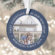 Celebre a alegria de seu novo lugar com uma foto personalizada de dois "Primeiro Natal em nossa Nova Casa", um ornamento acrílico redondo e azul marinho. Todos os textos e imagens neste modelo são simples de personalizar e podem ser diferentes ou iguais em frente e atrás. (DICAS DE IMAGEM e DESIGN DE TEXTO: 1) Para ajustar a posição do texto, adicione espaços no início ou no fim. 2) Para centralizar a foto exatamente como quiser, recorte-a em forma quadrada antes de carregá-la no site do Zazzle.) design azul e branco-marinho com nome e ano de tipografia minimalista na moda moderno e duas imagens de sua escolha. Esta familia única adiciona um toque elegante à decoração da casa do Natal ou faz uma ideia pensativa de presente de realeador de casas. Não há lugar como uma nova casa para as férias!
