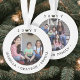 Comemore as alegrias simples das festas com um Enfeites de natal personalizado de fotos em acrílico. As imagens e todos os textos neste modelo são simples de personalizar e podem ser diferentes ou iguais em frente e atrás. (DICA DE IMAGEM: Uma maneira fácil de posicionar uma foto exatamente como você deseja é recortá-la antes de carregá-la no site do Zazzle.) A design moderna minimalista apresenta nomes clássicos de tipografia de máquina de escrever e ano, e duas imagens da sua escolha. Esta familia única adiciona um toque elegante às decorações das casas de Natal.