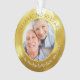Comemorar um 50º Aniversário (ou QUALQUER Aniversário mudando o número no campo de texto) com este adorável ornamento de manutenção do ouro com um fundo branco e de ouro e o título CELEBRATING 50 ANOS. Personalize com nomes e data de casamento ou qualquer texto que desejar. O verso dos estilos de ornamento de dois lados apresenta uma foto de sangria de cheio (use um tema "então e agora" ou uma foto de casal na frente e uma foto da família no verso). (DICA DA FOTO: para obter resultados mais rápidos/melhores, escolha uma foto com o assunto no meio ou pré-recorte sua imagem em forma quadrada ANTES de carregar e ela preencherá o espaço de fotos perfeitamente.)