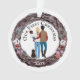 Celebre seu primeiro Natal junto com esta linda ilustração de uma mulher loira com cabelos vestindo calças de denim e um topo branco de pé com suas costas em direção a você segurando um bebê negro afro-americano em seus braços. O marido afro-americano tem o braço ao redor da cintura e está vestindo um topo vermelho, calças de denim, botas marrons e uma jaqueta sem dormir. O seu animal de estimação, um pequeno cão marrom está sentado no chão do lado esquerdo. Todos eles são enquadrados por um ramo de madeira que contém deliciosos frutos vermelhos, bolas de algodão, pine cones e folhas de abeto e as palavras, nosso primeiro Natal seguido do ano. O fundo tem uma modelo para a sua foto personalizada.