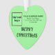 Feliz Natal! Encaminhamento acrílico com textos de saudação de Feliz Natal, nome de sua empresa ou empresa, logotipo, endereço e número de telefone. Designs são textos verdes escuros sobre fundo verde claro e forma cardíaca. Ornamento para decorar a árvore de Natal em sua loja, compro ou escritório. Ornamento para receber visualmente seus clientes nesta temporada de feriados e anunciar sua empresa ou promover seu nome de marca. Personalize-o e use-o para criar reconhecimento de nome de marca. Verifique a aparência após carregar o logotipo e digitar textos. Se a aparência lhe agrada, você pode colocar seu pedido agora. Se você precisar redimensionar e mover o logotipo e os textos para o ajustado neste ornamento, mude a ferramenta design. Você também pode fazer outras alterações de acordo com sua preferência na ferramenta design, como alterar a cor do ornamento, a cor da fonte e o estilo da fonte. Feliz Natal! Desejo mais vendas para você neste feriado.