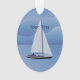 Uma ilustração gráfica de um veleiro na água de um Enfeites de natal. Arte original: Direitos autorais Charmaine Paulson