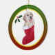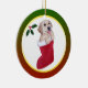 Arte original e engraçada de labrador retriever pintada por Naomi Ochiai de Japão. Filhote de cachorro amarelo adorável do laboratório que sorri na bota do papai noel. Um design tão delicioso de labrador retriever do Natal. Introduza-o conhecido no verso
