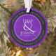 Celebre o aniversário do casamento da seda 12 com este ornamento comemorativo! As inscrições elegantes em serifa branca num fundo luxuoso de seda roxa acrescentam um toque memorável para esta ocasião especial e marco. Personalize com os nomes de casais felizes, anos de casamento e mensagens de parabéns personalizadas nas jantes. O reverso mostra design idêntico. Use como está ou substitua por uma foto do casal. Este design é otimizado para a forma do círculo. Design © W.H. Sim. Mais informações em zazzle.com/expressionsoccasions