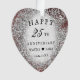 O fundo rosa metálico com brilho prateado anuncia a celebração de um feliz aniversário de prata 25. Um presente de prata é tradicional para este marco do aniversário de casamento. As cores de rosa, branco e prata são românticas para o ornamento cardíaco comemorativo.