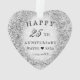 O fundo metálico prateado com brilho prateado anuncia a celebração de um feliz aniversário de 25 Silver. Um presente de prata é tradicional para este marco do aniversário de casamento. As cores do branco, da letra preta e da prata são românticas para o ornamento cardíaco comemorativo.