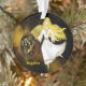 Anjo de Natal com uma estrela semitransparente, como um ornamento. O fundo é preto com pisos dourados flutuando ao redor do quadro. O nome no ornamento pode ser alterado ou removido, e o preto no verso pode ser alterado para uma cor diferente. Obrigados para Pixabay e Hungryjpeg para alguns dos elementos do design.