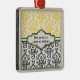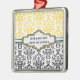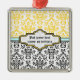 ornamento do aqua branco cor damasco preto. A parte superior é de cor damasco amarela e branca e a parte inferior é de preto e branco. Uma faixa aqua separa as duas partes. Seu texto é digitado em um rótulo elegante com contorno branco e amarelo. Um excelente para casamentos especiais, aniversários.