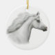 Design original das belas artes de um cavalo árabe branco orgulhoso pelo ilustrador Carolyn McFann do estúdio de ronrom de dois gatos em um ornamento da qualidade para amantes do cavalo.
